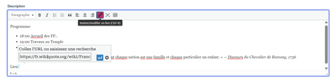 - Décrire votre événement en utilisant un formatage riche et des liens URL.