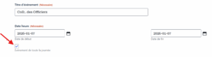 En sélectionnant “all day” ou “journée entière”, l’affichage de l’événement dans le calendrier change.