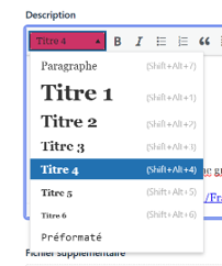 - Utiliser le Titre 4 pour que votre titre soit en rouge, comme sur le site.